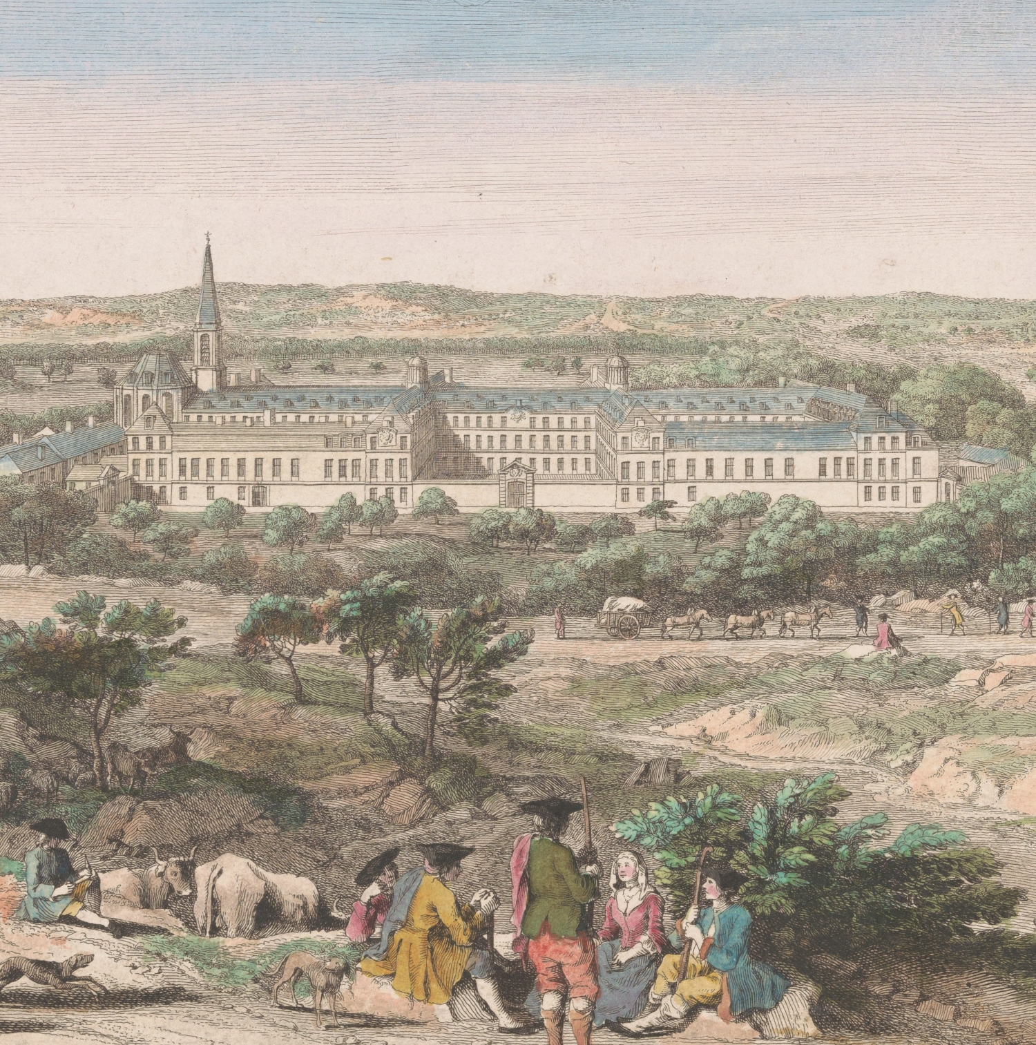 Anonyme (1700–1799), Vue de la Maison Royale de Saint-Louis à Saint-Cyr, [Gravure en couleur collée sur carton] Rijksmuseum,